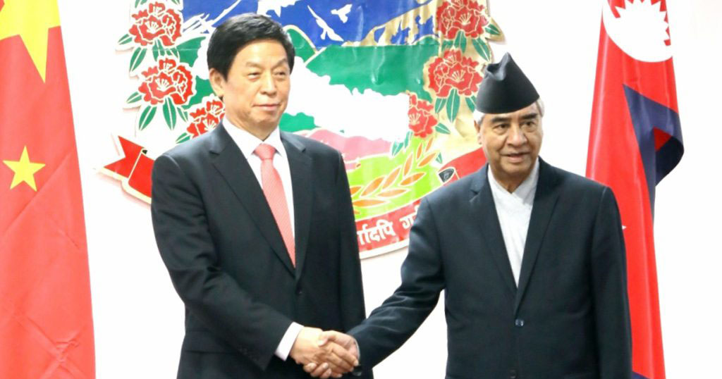 जनवादी गणतन्त्र चीनको राष्ट्रिय जनकांग्रेस, स्थायी समितिका अध्यक्ष ली चान्शुको नेतृत्वमा आएको चिनियाँ प्रतिनिधिमण्डलले मंगलबार सिंहदरबारमा गरेको भेटवार्ताका क्रममा प्रधानमन्त्री देउवाले नेपालको परराष्ट्र नीति पञ्चशीलको सिद्धान्तमा आधारित रहेको जानकारी दिँदै नेपाल एक चीन नीतिप्रति प्रतिबद्ध रहेको बताए ।