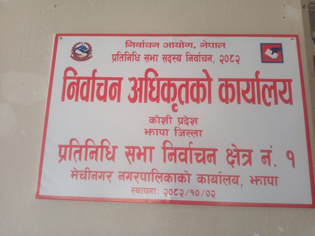 आगामी फागुन २१ गते हुने प्रतिनिधि सभा सदस्यकाे चुनावका लागि मेचीनगरमा झापा-१ काे निर्वाचन अधिकृतकाे कार्यालय सञ्चालनमा आएको हाे ।