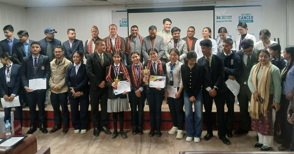 बिर्तामोड, १८ माघ । पूर्वाञ्चल क्यान्सर हस्पिटल बिर्तामोडले ‘क्यान्सर मुक्त भविष्यका लागि युवा’ सम्बन्धि वक्तृत्वकलामा निधि अंग्रेजी माविकी छात्रा सोफिया खड्का प्रथम भएकी छन् ।