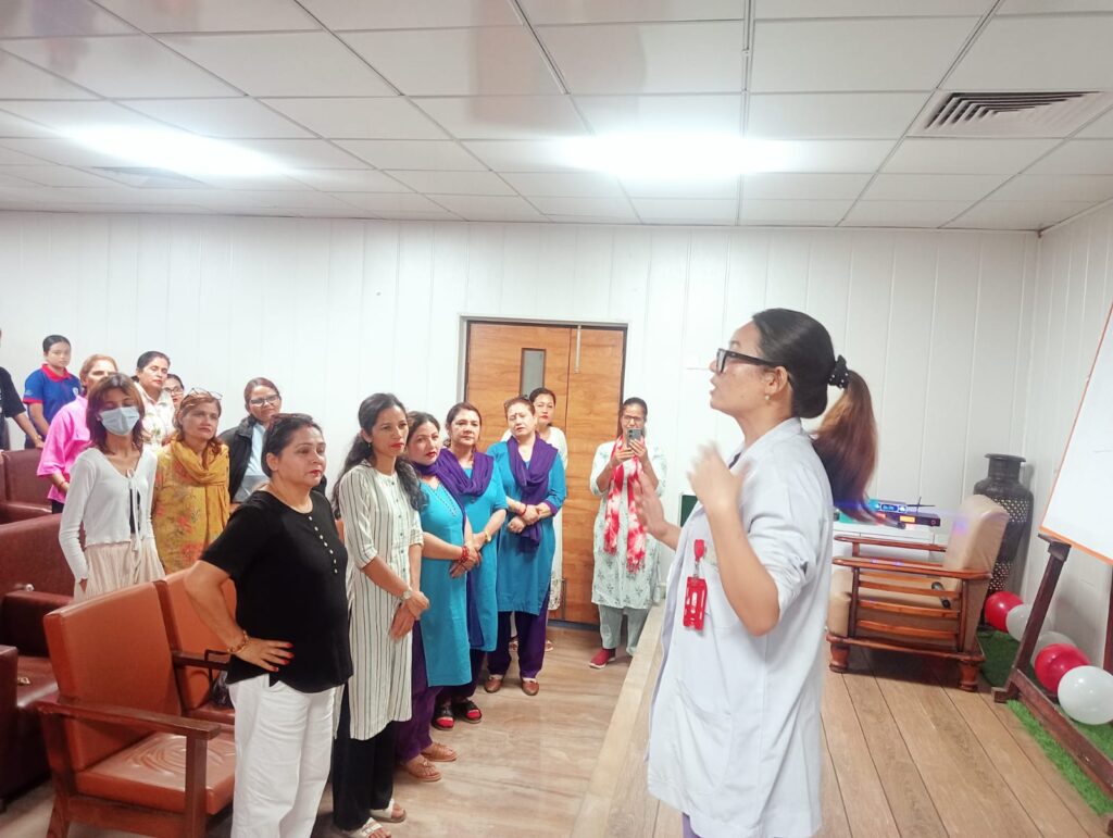 प्रशिक्षक प्रतिमा कार्कीले स्तन तथा पाठेघरको मुखको क्यान्सरको प्रारम्भिक पहिचान कसरी गर्ने भन्ने विषयमा सहभागीहरूलाई प्रशिक्षण प्रदान गरेकी थिइन् ।